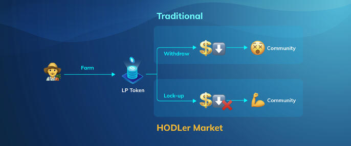With the HODLer market, projects can create a locked pool for their LP tokens which means users will get their LP token after a certain period. Only users who are committed and target for the long run are willing to lock their LP. HODLer market efficiently helps projects filter out mercenary liquidity providers and build a strong community.
