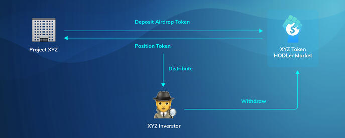 The HODLer market can successfully solve this situation by providing the projects with two options. Option 1 is a direct airdrop with a lock-up period. The projects can utilize the lock-up function and directly airdrop through the HODLer Market. Projects can simply deposit their airdrop token into the HODLer market and configure the maturity date. In return, they will get position tokens and distribute these to airdrop participants. Participants can directly withdraw the airdrop tokens upon maturity dates. This helps the projects filter out the mercenary stakers since they are looking to make some quick bucks.
