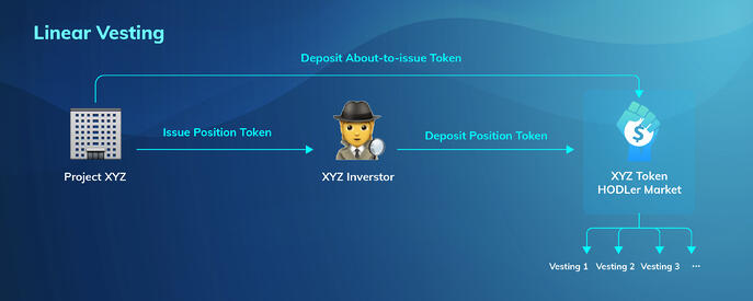 If the vesting schedule is linear, the project can first issue a token to represent investors' position and then create a HODLer market using the about-to-issue token as a reward token and the position representation token as the base token. The project can vest the token by configuring the total amount of rewards that need to be issued based on the vesting schedule.